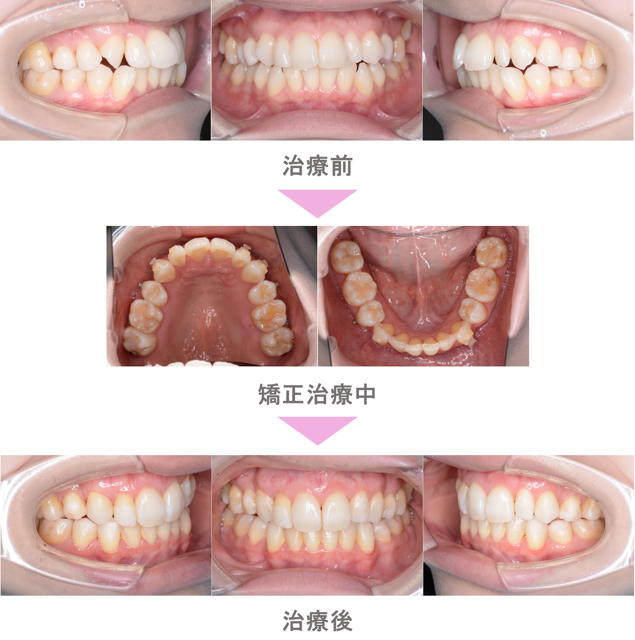 インビザライン矯正(マウスピース矯正)の症例紹介|出っ歯(上顎前突)と叢生(前歯のでこぼこ)の症状|抜歯による矯正治療|治療期間は2年4か月(東京都板橋区・30代女性 )