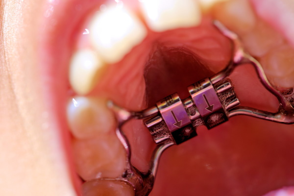 「急速拡大装置」は、上顎の骨を側方に拡大する装置です。上顎の骨を大きくすることで歯の並ぶスペースを確保するために使用します。