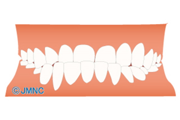 正常な噛み合わせでは、上顎の歯が下顎の歯より外側になっています。上顎の前歯の一部が下顎の前歯よりも内側に入っている状態や、上下の前歯の先端がぶつかる状態(切端咬合)は不正な噛み合わせであり、このような噛み合わせは虫歯や歯周病になりやすいだけでなく、歯に過剰な負担をかけることになるため、歯の寿命を縮めてしまいます。また、受け口になると下顎の成長を促進してしまうこともあります。