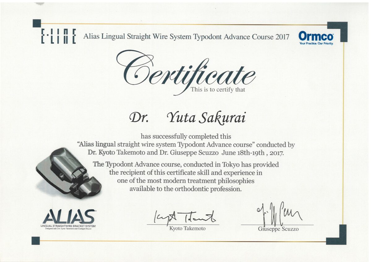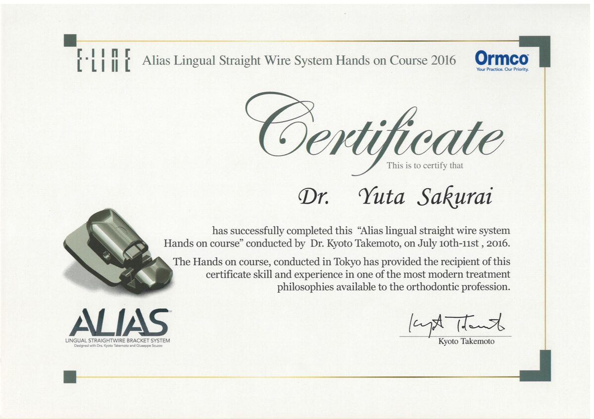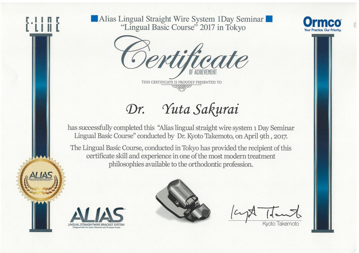 - 世界舌側矯正歯科学会認定医