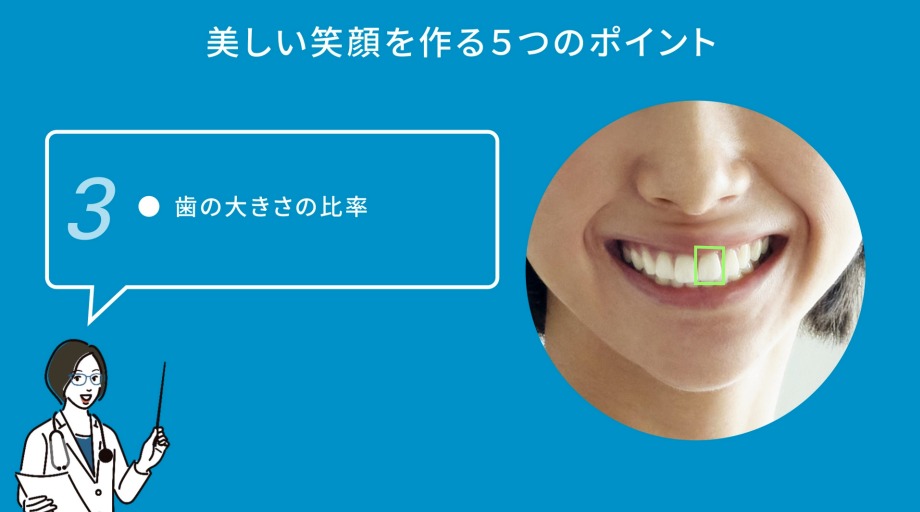 歯の大きさの比率も笑顔の印象を左右するポイントです。