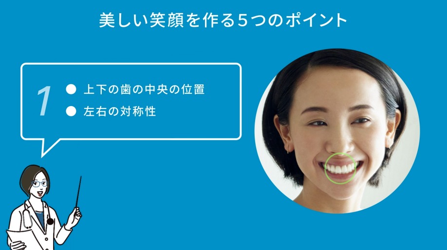 上下の歯の中央の位置、左右の対称性は、美しい笑顔を作る重要なポイントとなります。