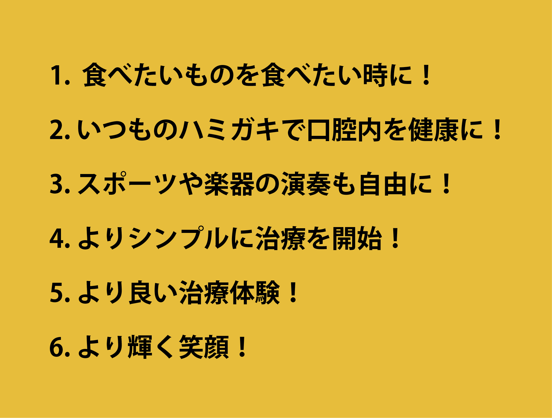 取り外し可能なため、好きなものを食べ、普段通り歯磨きをすることが可能です。また、スポーツや楽器の演奏も諦めることなく治療ができます。