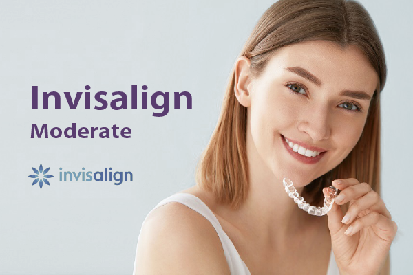 「インビザライン・モデレート」は、インビザライン・コンプリヘンシブとインビザライン・ライトの間に治療目標を置く患者様向けの、最大26枚のアライナーでの治療となります。