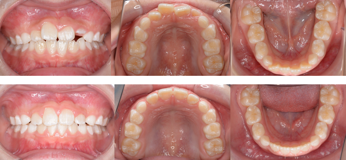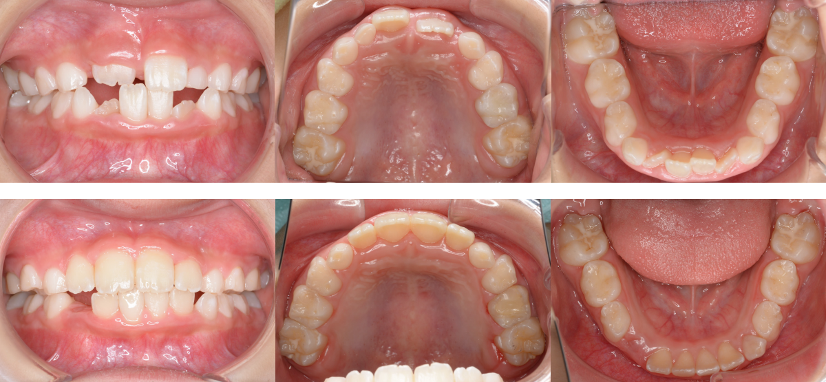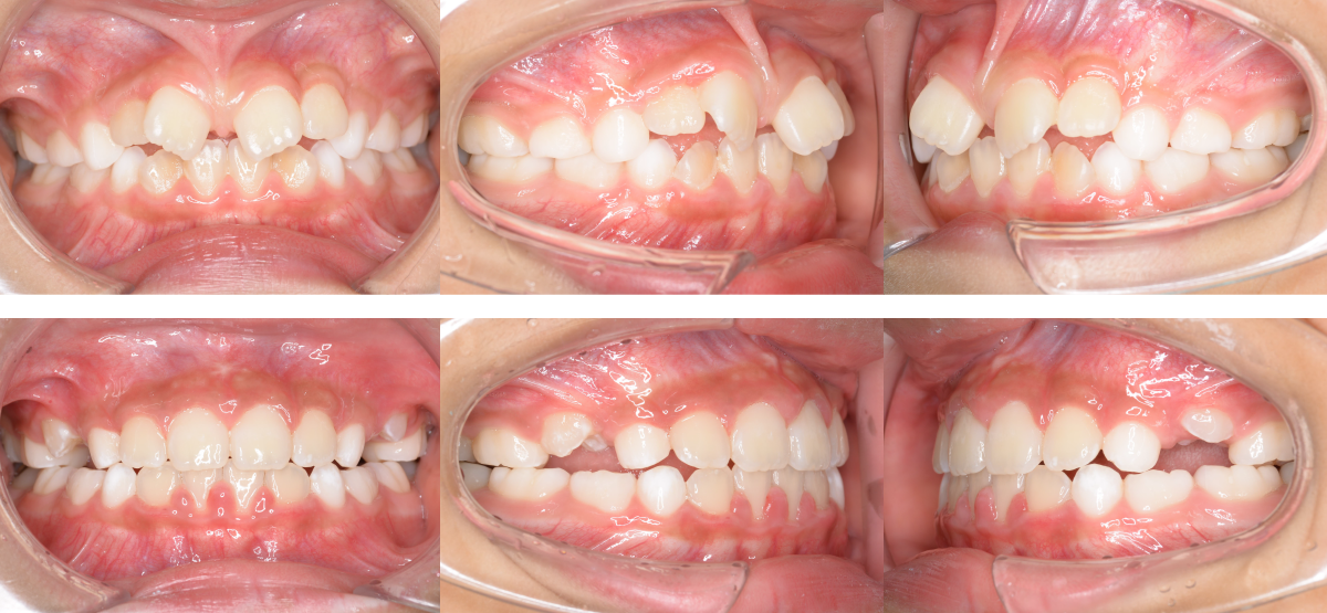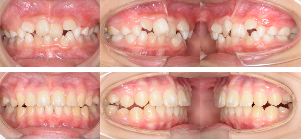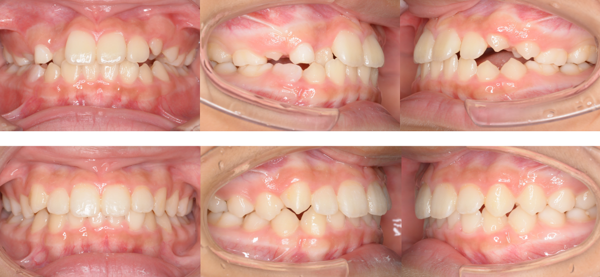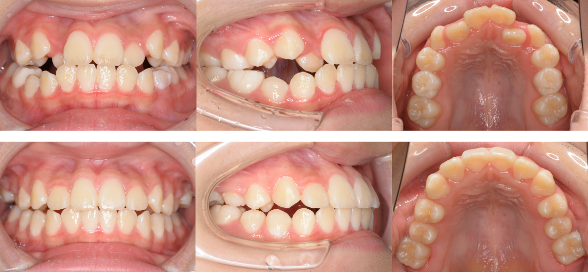 ①子供(小児)の叢生の矯正治療例(8歳女児・治療期間1年6か月)