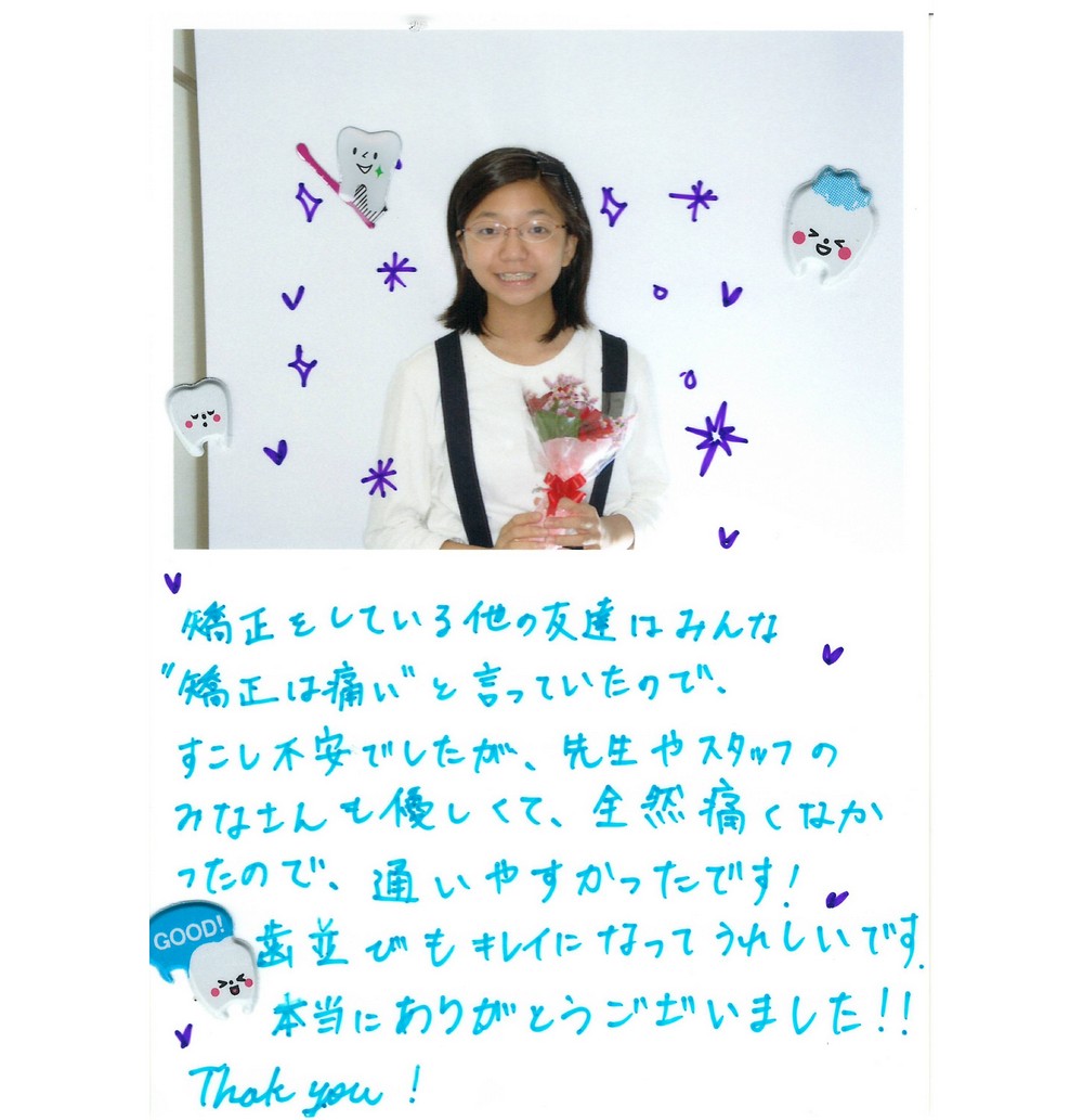 すこし不安でしたが、先生やスタッフのみなさんも優しくて、全然痛くなかったので、