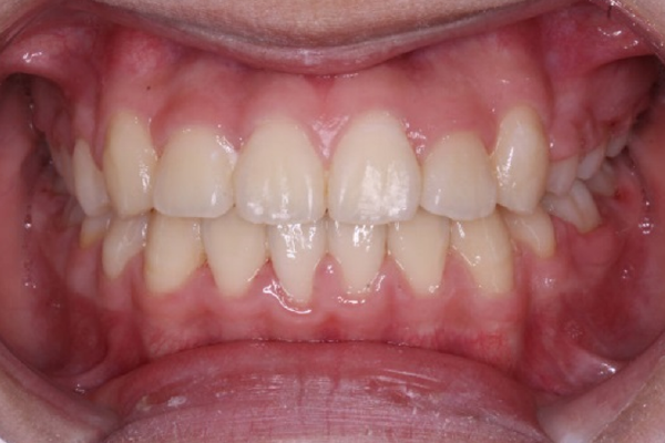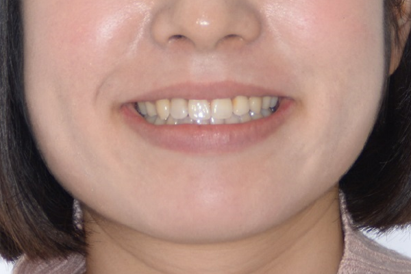 治療前は上唇が上がり、歯茎が多く見えていますが、治療後は上唇が丁度良い位置まで下がり、歯茎が見えなくなり歯の露出度が適度になっています。治療後の方が印象は断然良くなっており、患者様のコンプレックスが解消されたといえるでしょう。治療前には自信の無かった笑顔が、治療後には自信をもって笑顔になれるよう好転したのです。